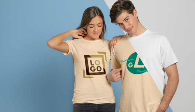 Front view of couple posing in t-shirts | PSD File